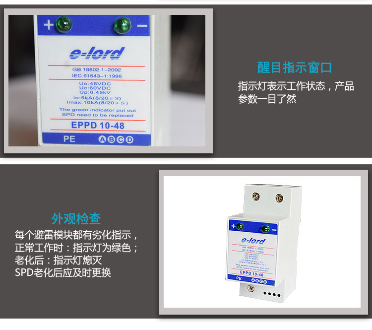 EPPD系列低壓直流型電源SPD是單體電源防雷模塊,防止感應(yīng)過電壓或操作過電壓對低壓交流用電設(shè)備的損壞。